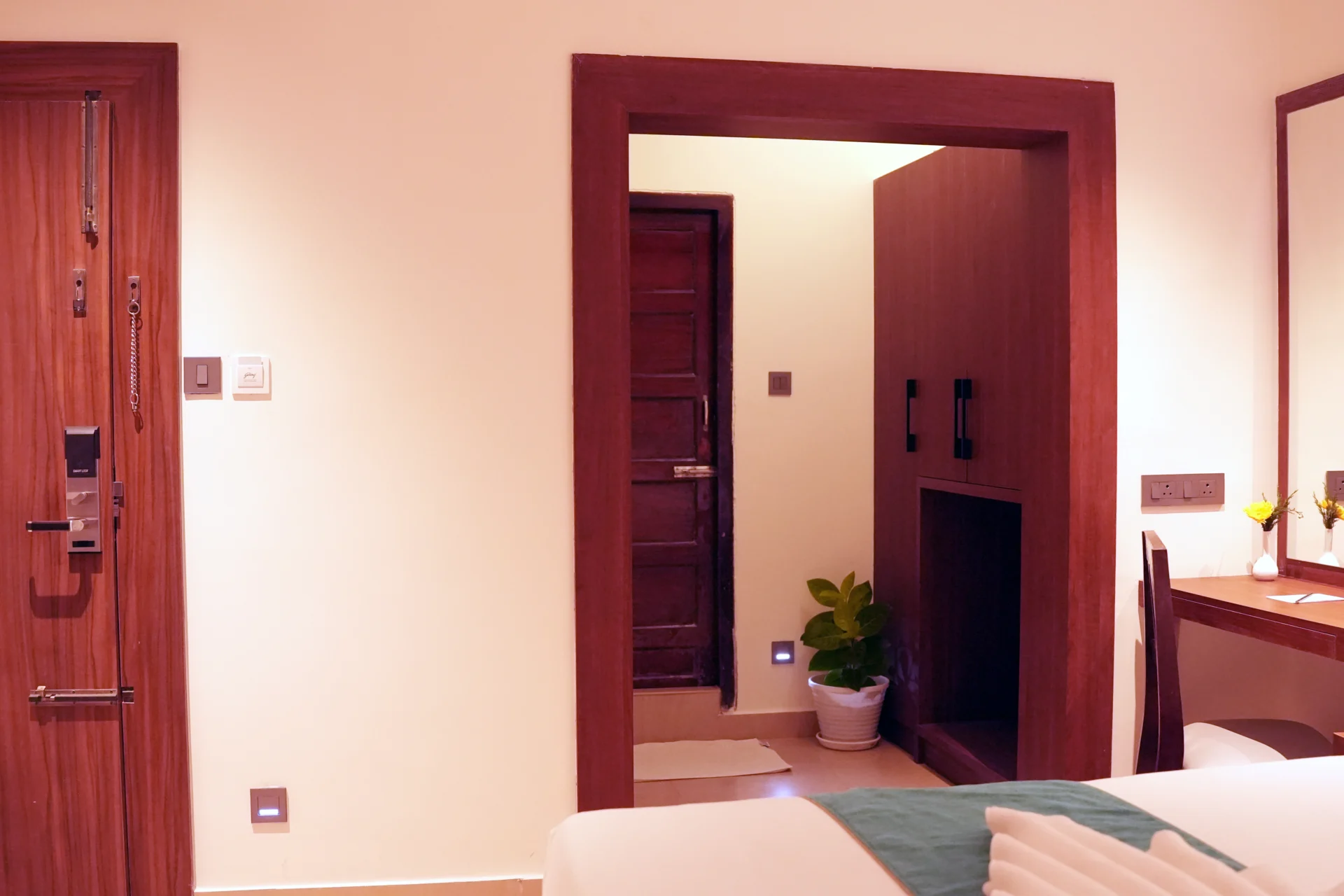 Designed to provide a refined and comfortable stay with well-appointed interiors and a warm, welcoming atmosphere. Featuring contemporary furnishings, thoughtful lighting, and essential modern amenities, the room ensures a restful experience for both leisure and business travelers. It is an excellent choice for guests seeking quality comfort and understated elegance during their stay in Kovalam.
